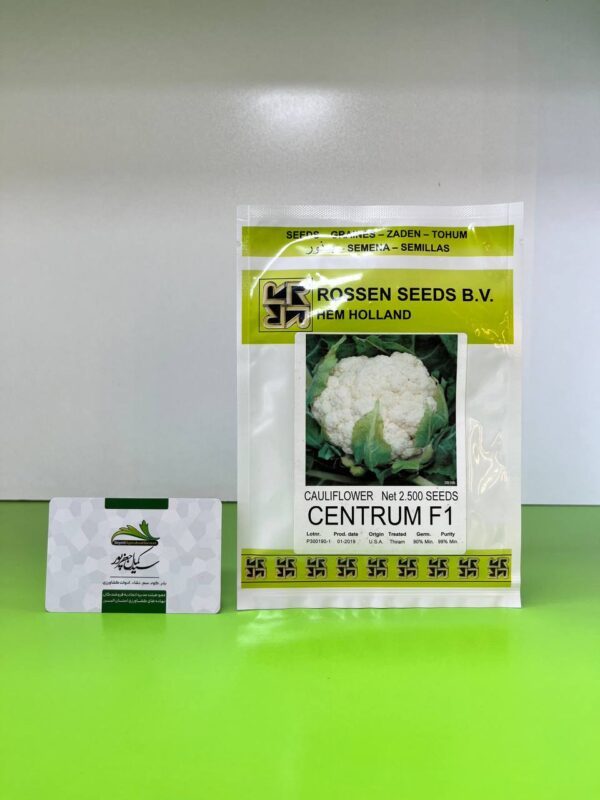 بذر گل کلم سنتروم محصول شرکت روزن سید هلند بوده و در پاکت های 2500 عددی به بازار عرضه می گردد. بذر گل کلم سنتروم یکی از ارقام هیبرید گل کلم بوده که در بسیاری از مناطق کشور مورد کشت قرار می گیرد. یکی از ویژگی های گل کلم سنتروم داشتن پوشش برگی مناسب این رقم می باشد. این پوشش برگی در گل کلم سنتروم سبب کاهش رسیدن نور به هد کلم شده و در ماندگاری و کاهش آفتاب سوختگی محصول تاثیر به سزایی دارد.